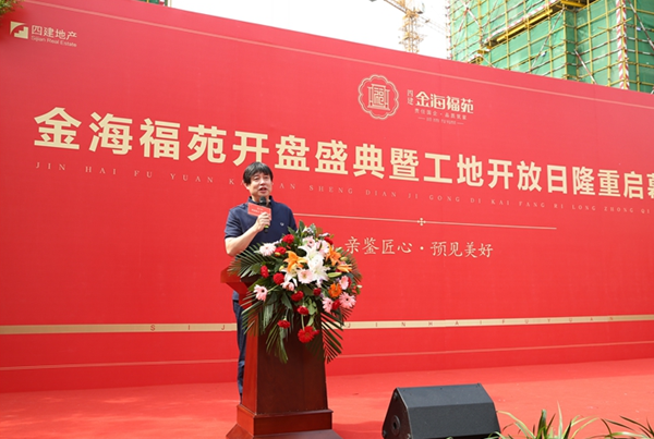 活動(dòng)尚未開始,四建金海福苑營銷中心內(nèi)外已是人潮涌動(dòng)。項(xiàng)目的新老主們?cè)缭缛胱姸嘈驴蛻裟矫鴣?。上?點(diǎn)18分,一場(chǎng)精彩的開場(chǎng)舞表演之后,四建金海福苑開盤盛典暨工地開放儀式正式開啟。濟(jì)南四建集團(tuán)副總經(jīng)理、四建地產(chǎn)總經(jīng)理徐洪濤先生率先上臺(tái)致辭,他表示:四建地產(chǎn)作為責(zé)任國企,一直以打造高品質(zhì)人居為己任。而此次開盤的四建金海福苑項(xiàng)目,作為四建地產(chǎn)的升級(jí)力作,必將沿襲國企的匠心與服務(wù),為濟(jì)陽奉獻(xiàn)一座嶄新的人居豐碑。隨后,設(shè)計(jì)單位、工程園林部門、物業(yè)單位分別詳細(xì)介紹了四建金海福苑的設(shè)計(jì)理念與服務(wù)模式。從建筑規(guī)劃到新中式園林設(shè)計(jì)再到24小時(shí)物業(yè)服務(wù),全方位的介紹,無一不展示出四建金海福苑非凡的品質(zhì)與品位。