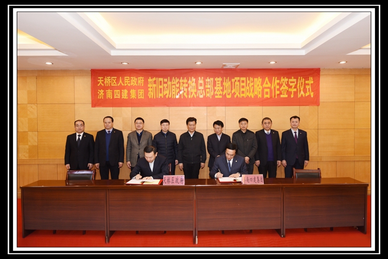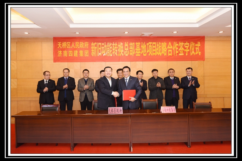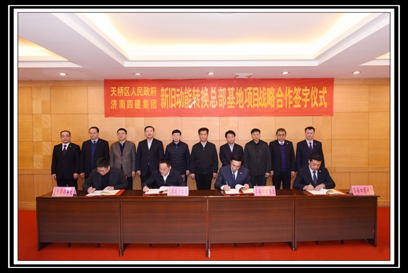 在各位領(lǐng)導(dǎo)的共同見(jiàn)證下,天橋區(qū)區(qū)委副書(shū)記、區(qū)長(zhǎng)竇虎區(qū)長(zhǎng)代表天橋區(qū)政府,曹曉巖董事長(zhǎng)代表集團(tuán)公司,共同簽署《天橋區(qū)人民政府支持濟(jì)南四建集團(tuán)騰籠換業(yè)相關(guān)政策的協(xié)議》;濟(jì)南天橋投資控股有限公司董事長(zhǎng)李敏杰,天橋區(qū)官扎營(yíng)街道辦事處主任谷亞,集團(tuán)公司董事長(zhǎng)曹曉巖,濟(jì)南四建集團(tuán)房地產(chǎn)開(kāi)發(fā)有限責(zé)任公司總經(jīng)理徐洪濤,分別作為四方代表,共同簽署《天橋區(qū)人民政府、濟(jì)南四建集團(tuán)新舊動(dòng)能轉(zhuǎn)換總部基地項(xiàng)目戰(zhàn)略合作意向書(shū)》。