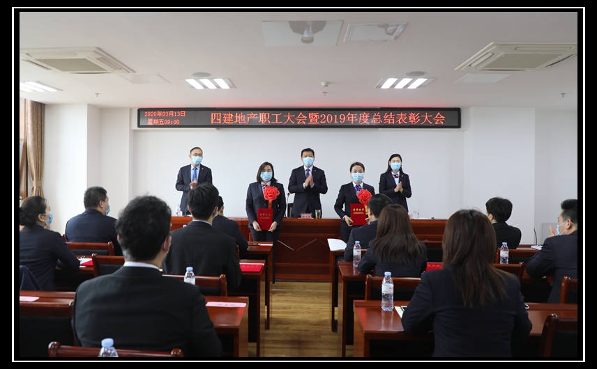 3月13日上午,四建地產(chǎn)職工大會(huì)暨2019年度總結(jié)表彰大會(huì)在四建地產(chǎn)大會(huì)議室圓滿召開(kāi)。四建地產(chǎn)、萬(wàn)盛物業(yè)中層以上管理骨干及受表彰員工參加會(huì)議。