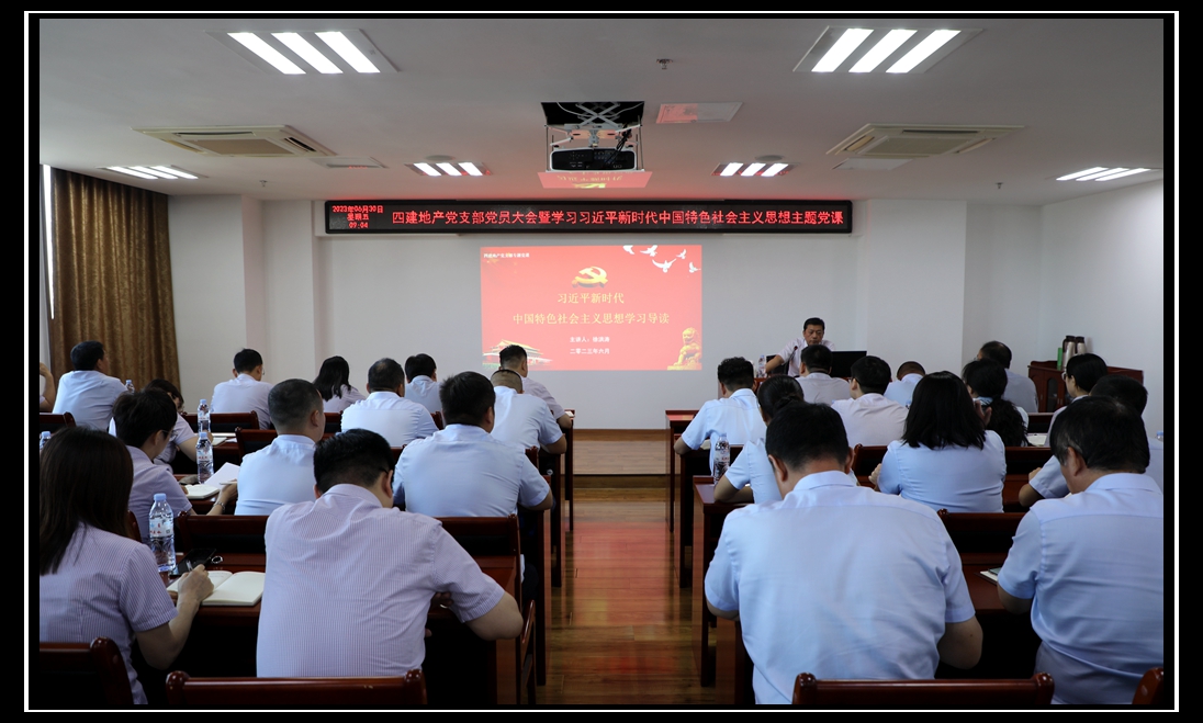 為深入學(xué)習(xí)貫徹習(xí)近平新時(shí)代中國(guó)特色社會(huì)主義思想,引導(dǎo)廣大黨員“學(xué)思想、強(qiáng)黨性、重實(shí)踐、建新功”,6月30日上午,四建地產(chǎn)黨支部組織開展黨員大會(huì)暨專題黨課。四建集團(tuán)黨委委員、四建地產(chǎn)黨支部書記徐洪濤同志以“習(xí)近平新時(shí)代中國(guó)特色社會(huì)主義思想學(xué)習(xí)導(dǎo)讀”為主題,為全體黨員上了一堂生動(dòng)黨課。本次大會(huì)共40名黨員參加,會(huì)議由地產(chǎn)支部副書記楊沖主持。