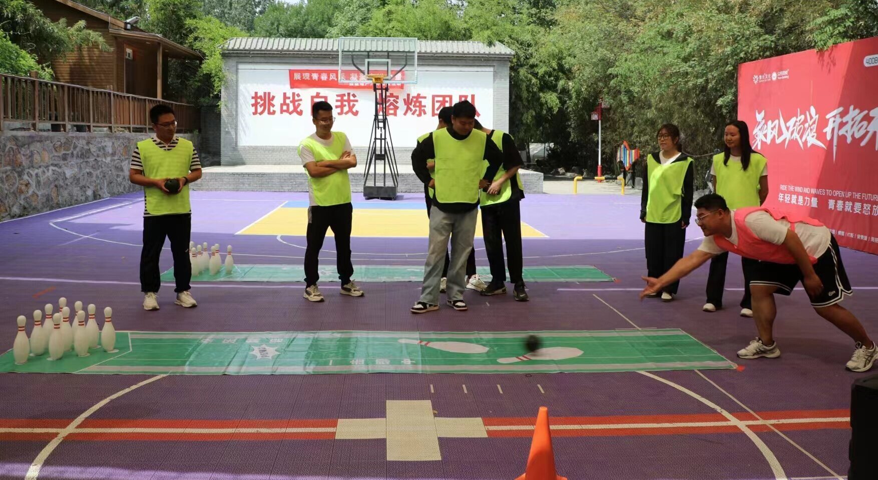上午9點,全員抵達(dá)風(fēng)景秀麗的南山世紀(jì)園露營基地。在專業(yè)教練指導(dǎo)下,青年們通過破冰游戲迅速組建起兩支活力戰(zhàn)隊,并在隨后的趣味項目環(huán)節(jié)中充分展現(xiàn)出青春風(fēng)采?!捌簌Z漫步”考驗?zāi)托呐c平衡,員工們夾球前行、穩(wěn)中求勝,生動詮釋“少犯錯即快進(jìn)度”的智慧;“瓶定乾坤”保齡球賽則讓歡聲笑語與競技熱情交織一起,有效促進(jìn)跨部門溝通;“鼓舞飛揚”中,隊員們緊握鼓繩、全神貫注,通過多次顛球挑戰(zhàn)錘煉協(xié)作精度。有青年員工感慨:“看似簡單的任務(wù),需要每個人專注配合,這正是團(tuán)隊協(xié)作的魅力!”下午的“飛盤嘉年華”則將活動推向高潮。青年員工們分為兩隊,在投擲、接盤、戰(zhàn)術(shù)配合中展現(xiàn)出拼搏與默契。飛盤精神“盤不落地,永不放棄”與五四精神不謀而合,隊員們以行動詮釋了青春的熱血與堅持。